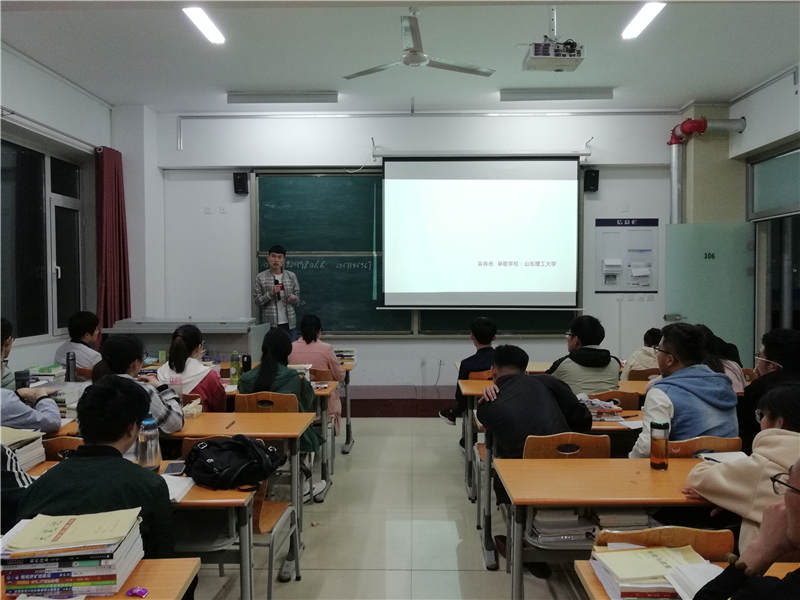 首先,张立峰老师简要介绍了四位2015级考研成功上岸的同学。其次,四位同学分别从考研目标的确定、心态的调整、学校和专业的选择、考研课程的学习方法以及考研中面临的问题等多个方面与同学们分享了他们的心得体会。其中,许雪洁同学重点对考研资料的选择、考研英语、跨专业考研等问题分享了宝贵经验;吴春岳同学特别告诫要考研的同学们要一路坚持下来,并特别分享了复试中面试技巧。再次,四位同学分享考研经验后任培培老师进行了总结和补充。在最后的面对面提问环节中,张立峰老师鼓励2016考研同学积极与四位考研成功学生进行提问和交流,座谈会气氛融洽而热烈。