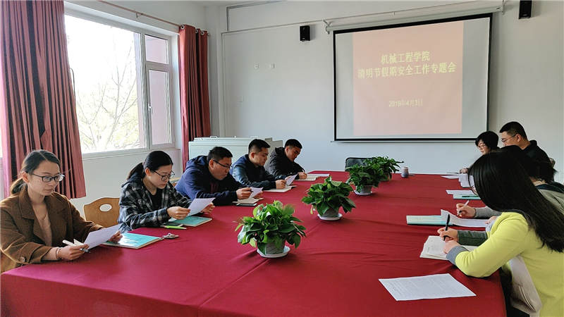 为增强学院师生安全意识,落实安全责任,确保全年无安全事故发生,促进学院安全稳步发展,根据学院工作安排我院于2019年4月3日下午16:00,在20号楼216召开清明假期安全工作部署会议,参加此次会议的有院长李玉凤、院长助理王桂伟、学管科长马安会以及学院全体辅导员,王桂伟主持会议。