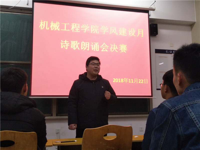 为弘扬传统文化,进一步活跃校园文化氛围,加强学风建设,丰富同学们的课余文化生活。同时陶冶思想情操,培养学生们对诗歌的兴趣,提高广大同学对古典诗歌的欣赏水平,拉近与传统文化的距离。永利23411集团院于2018年11月22日在21号楼310举办诗歌朗诵会比赛,给同学们一个展示自我的舞台,同时,号召更多的诗词爱好者投入到学习诗词歌赋的文化氛围中,为增添校园文化气息贡献一份力量。