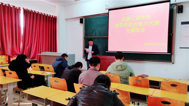 为迎接学校辅导员职业能力大赛的最终决赛,贯彻学校对辅导员队伍的素质培养和提升的政策。永利23411集团于2018年11月21日在21号教学楼311教室举行辅导员主题班会比赛。此次比赛由永利23411集团学管院长王桂伟、处长助理栗新燕、学管科长马安会和学管干事李宁担任评委。