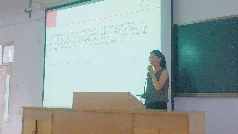 随后,马小舒老师为新生带来一堂题目为《立足当下,做社会需要的人才》的示范主题班会课。马老师通过引言引出什么是成功开始课程的讲述,并结合具体案例对当今社会需要什么样的人才、大学生如何塑造自己为成功人生做准备两个议题进行深入的分析。马老师提到大学生应以学好自己专业为本职任务,另外通过多读书、注意与人相处、勤于实践几个方面来全面提升自己,健全人格。课程内容充实有效,现场气氛热烈。