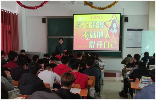为弘扬雷锋精神,让我院同学深刻领会到雷锋精神的真实内涵,时刻用雷锋精神指引学习和工作的前进方向,贯彻全心全意为人民服务的思想,营造浓厚的学雷锋氛围,我院各班级团支部于2018年3月8日下午2点召开了“学雷锋”主题班会。