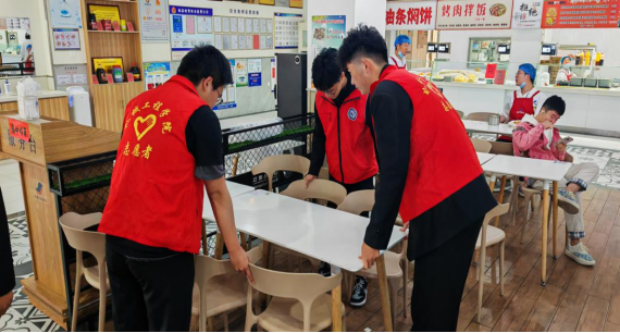 第四部分由我院督察委组织进行餐盘回收行动。为了弘扬劳动精神和志愿服务意识,我们组织志愿者到餐厅帮助保洁员进行餐盘回收志愿活动。在活动中,我们分工进行餐盘回收工作,一部分同学负责在用餐区域收集空餐盘,其余同学在回收台对餐盘进行分类整理。这一活动旨在丰富同学们的校园文化生活,加深同学们对劳动的认识和尊重,帮助同学们树立良好的社会责任感和奉献精神。