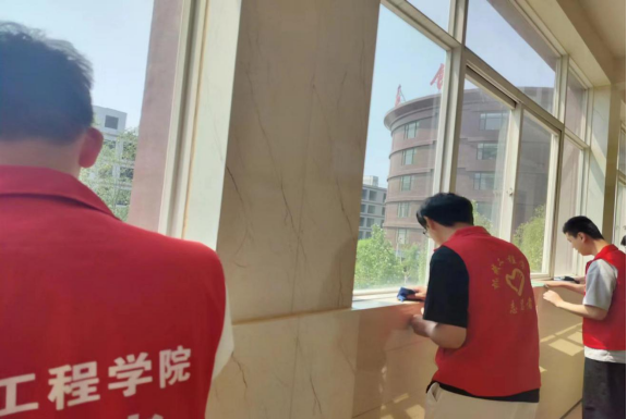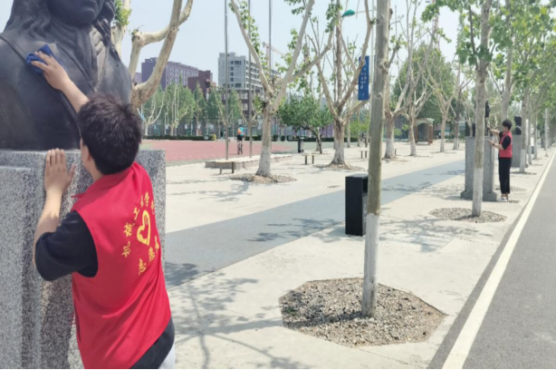 第三部分由我院学生会组织开展校园卫生大扫除活动。在校园中,有许多名人像静静地矗立着,他们是师生们的榜样,他们指引着师生们前进的方向。为营造一个干净、整洁的校园环境,同学们拿起扫把、抹布等工具,对教室、走廊、操场、名人像等区域进行了全面清洁。大家齐心协力,用柔软的布料轻轻擦拭着雕像,用心打扫校园内的每一个角落,让整洁与美好的校园伴随着同学们的成长。通过付出劳动的汗水,共同打造出一个清新、明净的大美校园。