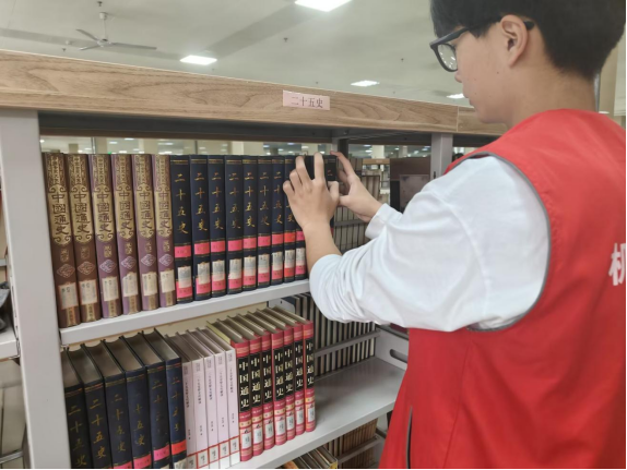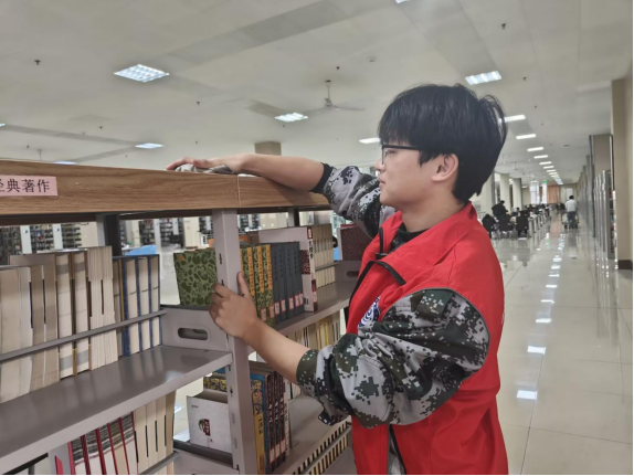 活动当天,志愿者们分工行动,有的负责清洁书架,他们手持抹布、扫帚,仔细擦拭书架隔板,清扫底部碎屑,确保环境整洁;有的负责书籍整理工作,他们将各类书籍按图书馆分类体系重新归位,从文学名著到专业典籍都摆放得井井有条。数小时后,书架变得干净整齐,借阅区焕然一新。