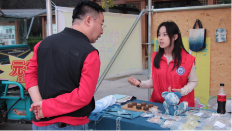活动现场,蓝染布艺小熊、萌趣手工皂、古法工艺制品等非遗作品琳琅满目。志愿者们化身“非遗讲解员”,细致讲解蓝染、手工皂制作的历史渊源,手把手指导居民参与布料浸染、皂体脱模等工艺环节。从蓝染布料的自然渐变晕染,到手工皂的创意成型,每一个环节都让居民们沉浸式体验到传统文化的温度,现场互动频繁,氛围热烈。