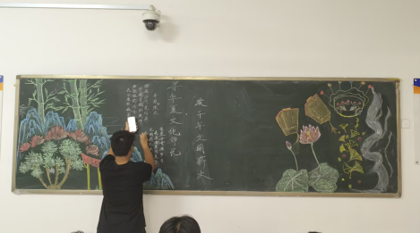 创作过程中,同学们分工协作、各展所长。有的查阅典籍史料,梳理从商周青铜文明到唐宋诗词雅韵、从明清民俗风情到现代文化创新的发展脉络;有的精心设计版式,以水墨风格勾勒长城、故宫等文化地标,用朱砂色调点缀甲骨文、传统纹样等元素;有的挥毫泼墨,将经典诗词、文化名人名言与非遗技艺介绍融入版面,让每一处排版都承载文化内涵,每一笔线条都传递文明温度。经过同学们的精心打磨,一块块主题鲜明、图文并茂的黑板报相继呈现,既展现了华夏文化的博大精深,又彰显了当代大学生的创意与担当。