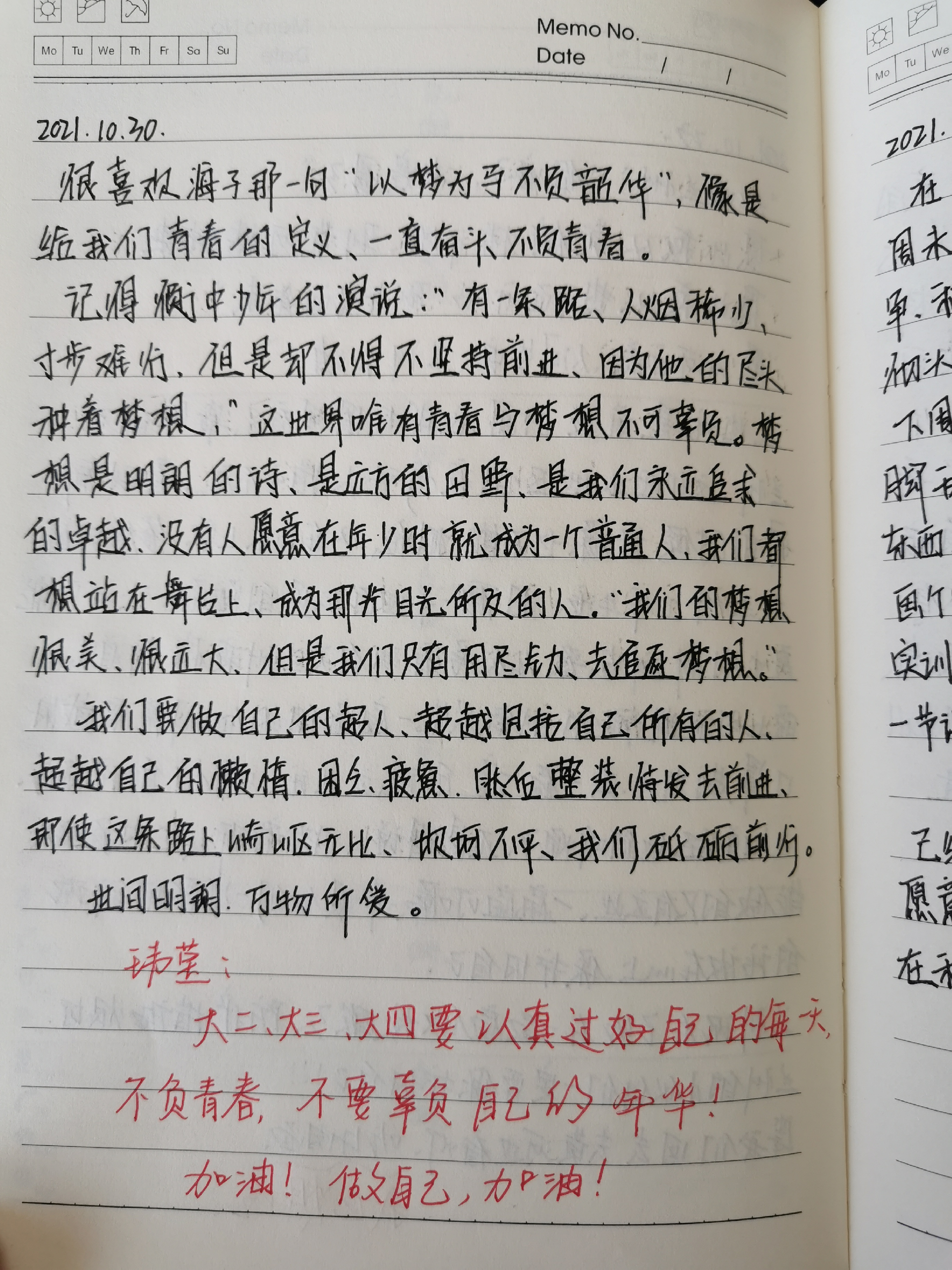 开展课前十分钟演讲,为学生提供一个自我展示的平台,提升学生表达能力,组织课前十分钟演讲比赛,评选演讲达人;开展记周记活动,锻炼提升写作能力;睡前半小时阅读活动,培养学生自主学习能力;开展寒暑期“5+x”活动,引导学生参与实践,实现德智体美劳全面发展。