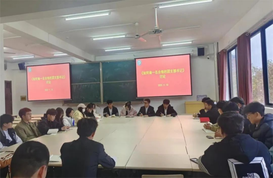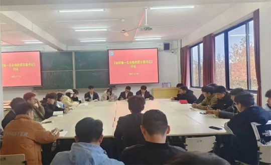 团支书是老师进行思想政治教育和价值引领工作的朋辈榜样,是团支部和班级建设的主力军,是同学日常事务管理的强力抓手,只有切实地成为一名合格的团支书,才能真正发挥作用,为班级同学做实事,实现自我价值。为贯彻落实习近平总书记在党的二十大报告中寄语“广大青年要坚定不移听党话、跟党走,怀抱梦想又脚踏实地,敢想敢为又善作善成,立志做新时代好青年。”11月10日,永利23411集团团总支举办了主题为“如何做一名合格的团支书”讨论活动。永利23411集团学生团总支书记张梓萱及部分团员代表参加了此次活动。