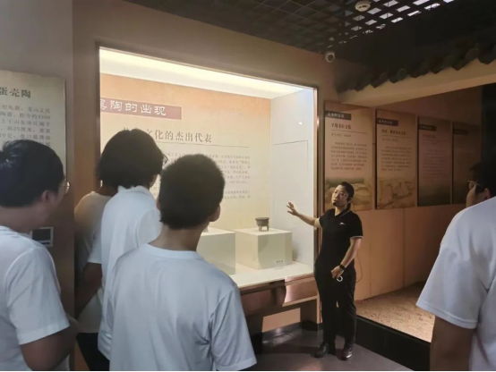 活动之初,队员们通过网络平台广泛搜集了关于黑陶的历史渊源、制作工艺及文化意义的资料,为后续的实地探访奠定了理论基础。抵达博物馆后,大家在专业匠人的带领下,近距离观察了从古至今的黑陶制品,从原始的黑陶碎片到现代创新设计的黑陶艺术品,每一件作品都诉说着黑陶技艺的悠久历程和独特韵味。