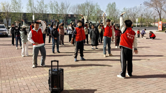 活动过程中,志愿者对社区居民进行了八段锦教学,将积极健康的生活理念传递给每一位社区居民。从起势到收势,每个动作都耐心讲解、细致指导,在交流互动中,与居民们建立起深厚的情谊。居民们热情高涨,尽管起初动作有些生疏,但在志愿者的帮助下,逐渐掌握了八段锦的基本要领,眼神中满是热情与喜悦。