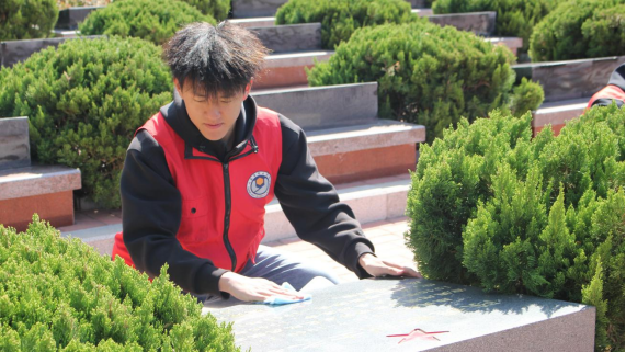 活动期间,志愿者们身着统一服装,在纪念碑前缓缓鞠躬、低头默哀后分片擦拭墓碑,以实际行动深切表达对先烈的敬仰之情。随后,志愿者们走进陵园革命纪念馆,驻足观看文物展品,聆听讲解员讲述革命事迹,民族自豪感油然而生。现场气氛庄重而肃穆,令人动容。