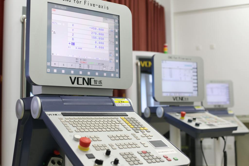 五轴数控机床模拟实验室是机械类专业实验室,配有数控五轴模拟训练机3台,教学计算机21台,NX 12.0软件21节点,多媒体设备1套。数控五轴模拟训练机配备海德汉iTNC530和西门子Sinum -erik 840D双数控系统模拟器和工业级Vericut数控多轴仿真软件,可完成数控加工自动编程、多轴数控机床模拟操作、3-5轴数控机床加工仿真等训练项目。培养学生数控加工自动编程与多轴数控机床操作能力。