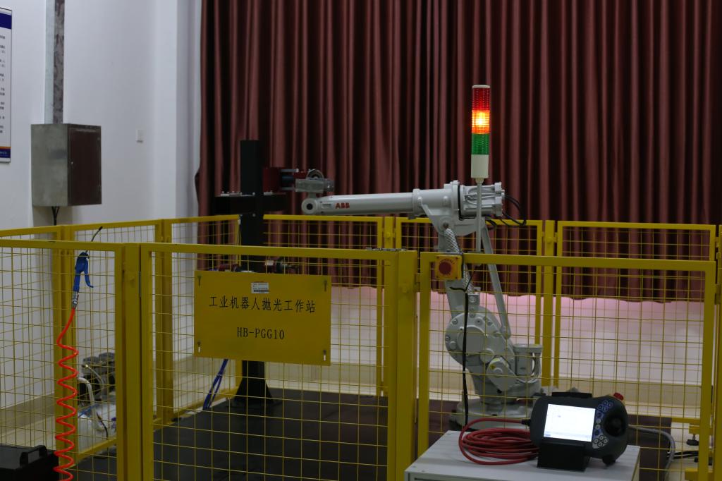 实训室(三)配有工业机器人焊接工作站、工业机器人抛光工作站各1套。可完成工业机器人弧焊、去毛刺、打磨、抛光,机器人设备操作与应用维护,电气控制柜布线、元器件选用,PLC编程控制及网络连接等训练项目。培养学生工业机器人的编程与系统测试能力、工业机器人操作维护能力。
