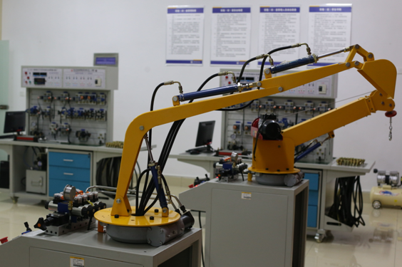 液压与气动技术实验室(一)配有透明液压传动综合实验台2台、工业用双面液压传动综合实验台2台,实验台均配备整套液压元件。可完成的实验项目:液压元件的性能测试、典型液压回路装调、机-电-液一体化综合控制等。液压与气动技术实验室(二)配有双面液压气压传动综合实验装置2台,典型液压系统挖掘机、起重机PLC仿真实验台各1台。可完成的主要实验项目有:液压泵等元件的性能测试、典型液压、气压回路装调、机-电-液一体化综合控制、挖掘机、起重机机构组装实验等。通过实验可以使学生掌握基本的实验方法及实验技能,同时帮助学生验正、消化和巩固基础理论,提高动手能力,为学生快速适应工作岗位奠定基础。